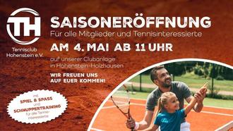 es ist wieder soweit! Die Tennissaison startet! Hierzu laden wir euch am 04. Mai auf unsere schöne Clubanalage in Hohenstein Holzhausen am Steinweg ein.