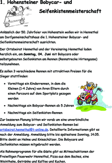 Der Kartenvorverkauf für die Abendveranstaltungen am Freitag, 30.06., läuft seit 02. Mai über www.reservix.de sowie über das Bürgerbüro der Gemeinde Hohenstein an. Der Vorverkauf für den Samstagsabend, 01.07., startete Montag, 08. Mai über das Bürgerbüro der Gemeinde Hohenstein.