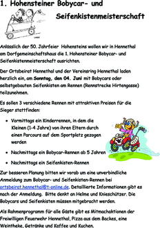 Der Kartenvorverkauf für die Abendveranstaltungen am Freitag, 30.06., läuft seit 02. Mai über www.reservix.de sowie über das Bürgerbüro der Gemeinde Hohenstein an. Der Vorverkauf für den Samstagsabend, 01.07., startete Montag, 08. Mai über das Bürgerbüro der Gemeinde Hohenstein.