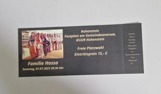 Besonders ans Herz legen möchten wir Ihnen den Samstagabend, 01. Juli. Die Partyband „Familie Hossa“ wird uns an diesem Abend zum Feiern und Tanzen einladen. Die Karten hierfür erhalten Sie ab sofort für nur 15,00 € ebenfalls im Bürgerbüro. Selbstverständlich gibt es an diesem Abend freie Sitzplatzwahl, so dass Sie mit Ihren Freunden und Nachbarn gemeinsam feiern können.