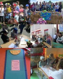 Eröffnet wurde das Fest mit einem gemeinsamen Lied für Mama und Papa, was so einigen Eltern die Tränen in die Augen getrieben hat. Danach durften sich die Eltern im Beauty- und Massagesalon oder im neu eingerichteten Snozzleraum entspannen, gemütlich im Eltern Café ein Schwätzchen halten oder orientalische Köstlichkeiten genießen. Wer Lust hatte, kreativ zu werden, hatte die Möglichkeit, Kochlöffel und Grillzangen zu gestalten. Um Stress im Alltag souverän zu begegnen, konnte man sich außerdem einen Stressball ( oder mehrere) anfertigen.