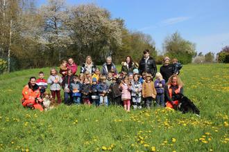 Im Rahmen des Projektes Hund - der beste Freund des Menschen besuchten am 27.04. zwei Hundeführerinnen der BRH Rettungshundestaffel Rheingau-Taunus die Kita „Villa Sonnenschein“ in Born. Zu Beginn erzählten die Ausbilderinnen Alexandra Pahl und Melanie Geldmacher über die Arbeit mit den Rettungshunden. Wen und wie können die Hunde suchen, wieso haben die Hunde eine Kenndecke mit Licht und Glocke und wie zeigen sie einen Fund im Wald an. Thema war auch das richtige Verhalten gegenüber eigenen und fremden Hunden. Im Anschluss konnten die Kinder die Hunde in Aktion erleben und einen kleinen Einblick in die Flächensuche und in das Mantrailing erleben. Zum Abschluss durften die Kinder die Hunde auch noch streicheln.