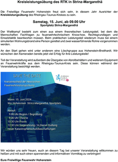 Die Freiwillige Feuerwehr Hohenstein freut sich sehr, in diesem Jahr Ausrichter der Kreisleistungsübung des Rheingau-Taunus-Kreises zu sein.