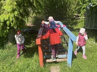 Zur Mittagszeit versammelte sich die Gruppe am Lagerfeuer, wo Stockbrot über den Flammen gebacken wurde - ein echtes Highlight für Groß und Klein. Danach wurde der große Abenteuerspielplatz weiter erkundet, mit Bobbycars gefahren und nach Herzenslust getobt.