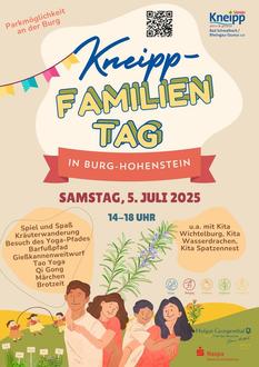 Am 05.07. ab 14.00 Uhr findet erstmals der Kneipp-Familien-Tag in Burg-Hohenstein statt. Besucher können sich u.a. auf eine Kräutersuche, Yoga, Qi Gong, Märchen und eine köstliche Brotzeit freuen. Weitere Informationen: www.kneipp-bad-schwalbach.de