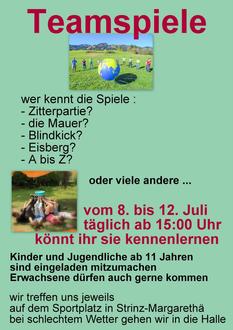 Auf lasst uns Teamspiele entdecken! Montag, 08.07., 15.00 Uhr