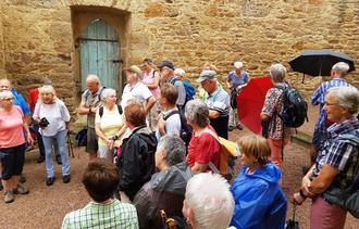 Eine Tour in der Rheinhessischen Schweiz stand am Donnerstag, dem 01. August auf dem Plan des Hohensteiner Wanderkreises. Je nach Wohnort war der Start bei Siefersheim in knapp oder gut 60 Minuten erreichbar. Damit sich die Anfahrt auch lohnt, hatten Gunhild und Werner eine Vormittags- und eine Nachmittagstour akribisch ausgetüftelt. Die Wetterfrösche änderten ständig ihre Prognosen, was die Vorbereitung für alle zusätzlich erschwerte. Zur Freude der heutigen Ausrichter der Tagestour konnten 31 Wanderwillige bei bedecktem Himmel und angenehmen Temperaturen auf dem Parkplatz am Rande Siefersheims begrüßt werden. Sich darin einig, dass es zum Wandern keiner besonderen Sonnenbestrahlung bedürfe, lief die Gruppe frohen Mutes in Richtung Eckelsheim. Pferde grasten auf einer Weide und Rehe sprangen in hohen Fluchten über einen gelb leuchtenden abgeernteten Getreideacker; ob sie wohl von einem der Rübenäcker mit fett glänzenden Blättern kamen? Sonnenblumen drehten ihre Blütenteller zum für die Wanderer nicht sichtbaren Zentralgestirn; dazwischen leuchteten purpurfarben die Blüten der Sommermalven und am Weg begleiteten uns die blauen Blüten der Wegwarte, deren Wurzeln einst als Kaffee-Ersatz herhalten mussten. So idyllisch hätte es weitergehen sollen auf der etwas abgewandelten „Hiwwelstour“, das war Gunhilds und Werners Plan.