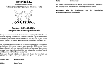 | 17:30 Uhr | Burg-Hohenstein Konzert Tastenball |