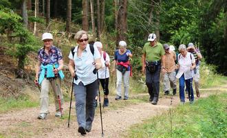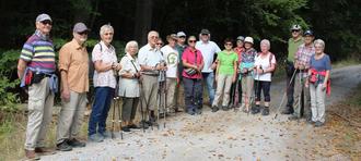 Der erste Tag im Monat September war heuer nicht nur ein Donnerstag mit Wandertermin bei Strinz-Margarethä, sondern auch noch ein schöner Spätsommertag. Die 18 bei der Aubachhalle erschienenen Wandersleute schritten mit flotten Schritten zur Pfalzstraße und von dort weiter zum Römersbach. Parallel zur Straße zum Hofgut Georgenthal folgte die Wandergruppe dem Talweg. Wiesen und Buschwerk wechselten sich ab, wo eine gemischte Schaf- und Ziegenherde die Wanderer lautstark begrüßte. Der große Teich im Tal sah gut gefüllt aus, woraus geschlossen werden konnte, dass der Römersbach nicht zu den völlig ausgetrockneten Bachläufen gehört. Nach der Überquerung der Autostraße gab das vom Römersbach eingeschnittene Tal die weitere Marschrichtung vor. Auf stetig ansteigendem Weg wurde eine Wiese erreicht, an deren Rand Treppenstufen zu sehen waren. Hier muss also das „Camp Echo“ gewesen sein, denn von den einstigen Freizeiteinrichtungen ist sonst nichts mehr zu entdecken, wie ein Wanderer trotz nachdrücklicher Suche feststellen musste. Die Quelle des Römersbaches war nun nicht mehr weit von diesem Terrain entfernt. Aus einem einige Quadratmeter großen, sich durch die dunkle Erdfeuchte von der Umgebung abzeichnenden Bereich, sickerte das Wasser aus dem Untergrund und formte sich zu dem kleinen Bächlein. Vom Römersbach lief die Gruppe weiter zum Gipfel des Römersberges. Bevor der Trigonometrische Punkt mit knapp 470 Höhenmetern erstiegen war, gab es eine kurze Pause am Rande des Golfplatzes. Am höchsten Punkt erklärte der Wanderführer den Mitwanderern, dass hier die Gemarkungen von Steckenroth, Hambach und Strinz-Margarethä zusammentreffen. Vom höchsten Punkt geht der weitere Weg naturgemäß bergab, aber wie lange und wie steil zuweilen, das war für etliche Wanderinnen und Wanderer doch überraschend. Von der Forststraße auf dem Grat bog der Wanderkreis bei der nächsten Kreuzung mit befestigten Waldwegen nach rechts ab, um durch den Distrikt Hinterscheid zum Aubachtal zu laufen. Die dort angelegte Forststraße schlängelt sich durch abwechslungsreichen Wald und gefiel den Teilnehmern sehr gut. Am Ende zogen imposante Felspartien die Blicke auf sich. Am Aubach entlang erreichten die flotten Läuferinnen und Läufer wieder das Tal des Römersbaches. Noch einmal ein kurzer Blick auf das Bächlein und auf die ersten Herbstzeitlosen und dann war hurtig über die Pfalzstraße wieder der Startplatz erreicht. Mit unterschiedlichen Worten und doch inhaltlich übereinstimmend wurde schließlich festgestellt, dass es ein schöner Wandertag gewesen war. Einige Teilnehmer trafen sich anschließend noch zur gemeinsamen Schlussrast in der Pizzeria ASPENDOS. Bei dem neuen Geschäftsinhaber, aber dem alten Wirt als Bedienung ließ man es sich gutgehen.