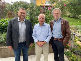 Beigeordneter Axel Kortschik und der stellvertretende Ortsvorsteher Lukas Bachmann überbrachten dem Jubilar Dieter Becker am 28. August die Glückwünsche der Gemeinde Hohenstein und des Ortsbeirates Breithardt zum 80. Geburtstag.