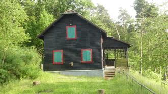 Mit viel Idealismus und Handarbeit wurde ein Holzhaus im Wald errichtet – etwa 750 Meter vom Ortsrand entfernt, idyllisch gelegen inmitten der Natur.