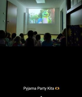Zum Weltkindertag am 20.09. dachte sich das Team und der Elternbeirat der Kindertagesstätte Burg-Hohenstein etwas Besonderes für die Kinder aus. Es gab eine Pyjama-Party im Kindergarten. Frau Frank und Herr Drury organisierten Beamer, Lautsprecher, den Film Zogg und sogar Hot Dogs. Die Kinder wurden in ihren Pyjamas um 17.00 Uhr in den Kindergarten gebracht, Eintritt bezahlt; Stempel auf die Hand und eine Eintrittskarte mit Gummibärchen gab es auch. Dann ging es zum Schlafanzug Yoga weiter. Danach schauten wir uns gemeinsam den Film Zogg an, dazu gab es wie im Kino selbstgemachtes Popcorn. Nach dem Film, den alle Kinder und auch die Erzieherinnen sehr schön fanden, gab es Hot Dogs zu essen. Gestärkt gab es noch eine Schlafanzug-Disco und eine Pyjama-Modenschau.