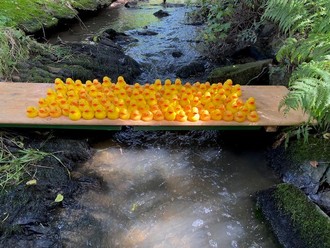 Gegen eine Startgebühr konnte sich jeder die Ente mit seiner Glücksnummer aussuchen und seine Ente gemeinsam mit allen anderen von der „Flutwelle“, die die Freiwillige Feuerwehr Hennethal durch Öffnen des gestauten Wehres verursacht hatte, Richtung Gasthaus Obermühle schicken.