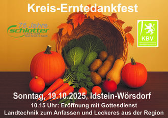 Der Kreisbauernverband Rheingau-Taunus e.V. lädt herzlichfür Sonntag, den 19. Oktober, zum traditionellen Kreis-Erntedankfest auf das Betriebsgelände der Fa. Schlotter in Wörsdorf ein.