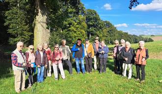 Eitel Sonnenschein vom blassblauen Himmelsgewölbe um die Mittagsstunde des 2. Oktober versprach einen schönen Herbsttag und damit auch einen ausgezeichneten Wandertag, denn es war ein Donnerstag, an dem sich nun seit fast 25 Jahren die Hohensteiner Wanderer zu einer Tour treffen. Heute war der Start vom Hennethaler Bürgerhaus aus geplant. Auch wenn zahlreiche Wanderer sich aus unterschiedlichsten Gründen abgemeldet hatten, so gestaltete sich das Abstellen der Fahrzeuge, mit denen die 22 Wanderwilligen erschienen waren, etwas schwierig. Ein deplatziert aufgestelltes Halteverbotsschild und die tatsächlich von der Müllabfuhr benötigte Rangierfläche hatten für einige Verwirrung gesorgt, aber die friedliebenden Wandersleute arrangierten sich schnell und so konnten die mit gut vier bzw. gut acht Kilometern geplanten Touren alsbald angegangen werden. Von der Borngasse strebten alle dem Scheidberg zu. Da hatten sich die Bernsteins Strecken ausgedacht, welche sich sogleich als Fitnesstraining und Herausforderung für die Muskelmotoren darstellten. Die Kühle der frischen Herbstluft einerseits und die Wärme der Sonnenstrahlen andererseits sorgten im Wechsel für mal mehr und mal weniger angenehme Gefühle auf der Haut.