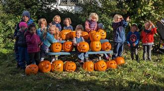 Das Kürbisschnitzen ist in Burg-Hohenstein inzwischen schon zur festen Tradition geworden. Mindestens eine Woche vor Halloween lädt der Ortsbeirat Burg-Hohenstein zum Kürbisschnitzen in den Forstgarten ein. In diesem Jahr bestand keine Gefahr wegen schlechtem Wetter in die Fahrzeughalle der Feuerwehr Burg-Hohenstein ausweichen zu müssen. Petrus hatte wieder mal ein Einsehen und so erfreuten sich alle Besucher, Organisatoren, Kinder und Eltern den vielleicht letzten wärmenden Sonnenstrahlen. Diese eiferten mit dem Strahlen der Kinder und den strahlenden Kürbisgesichtern um die Wette und so hatten alle einen vergnüglichen Nachmittag im Forstgarten. Die Kinderfeuerwehr kümmerte sich mit viel Unterstützung unserer Jugendlichen um das leibliche Wohl, verkaufte Muffins, Brezel mit Spundekäs‘ oder die traditionelle Kürbissuppe. Sogar Würstchen vom Grill waren im Angebot.