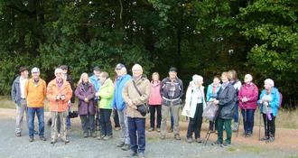Der Wetterdienst hatte für Donnerstag, 19.10. das Aufeinanderprallen von kalten und warmen Luftmassen vorhergesagt, wodurch die in den warmen Schichten gespeicherte Feuchtigkeit nicht mehr gehalten werden kann. Die Inkontinenz des Himmels über unserem Landstrich wurde je nach Vorhersage für 17.00 Uhr oder früher angekündigt. Da wollte der Wanderführer die 25 Wanderinnen und Wanderer, die sich pünktlich um 14.00 Uhr auf dem Parkplatz oberhalb des Friedhofes in Steckenroth versammelt hatten, nicht unnötig einer Beregnung aussetzen, zumal Wachstumsförderung durch einen eventuellen Guss nicht zu erwarten ist. Die Tour wurde also vorsorglich gekürzt, um rechtzeitig im Gasthaus zum Taunus Zuflucht finden zu können, wo man die Feuchtigkeit eher innerlich einwirken lassen konnte.