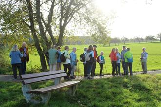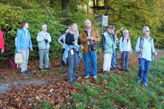 Ein wahrlich „Goldener Oktobertag“ lud am Donnerstag, 27. Oktober die Hohensteiner Wanderfreunde zu einer Wanderung rund um Breithardt ein. Auch wenn die Kleiderfrage bei den sommerlichen Temperaturen etwas schwierig war, so hatten sich doch rechtzeitig um 14.00 Uhr 18 Wanderwillige vor der alten Schule eingefunden. Nach der Begrüßung lenkte der Wanderführer die Gruppe zunächst in Richtung katholische Kirche. Bei dem Park- und Kirmesplatz bog die Gruppe nach links ab und folgte nun den Gewannwegen am Rande der Bebauung entlang. Beim Neubau eines Seniorenheimes wurde die Landstraße überquert und es folgte ein Stück Straße bis zum Wirtschaftsweg durch den Baltsenauer Graben. Im Wiesengrund sprießte frisches, saftig grünes Gras und auf den Äckern oberhalb keimte die neue Saat. Bevor die Wandersleute durch den Friedwald gingen, nutzten sie die Verschnaufpause, um über die Ansichten in der Nähe hinweg den Turm auf dem Feldberg zu erspähen. Im Wald erfreute das Herbstlaub die Teilnehmer, die Blätter im Geäst strahlten mit Unterstützung der Sonne in allen erdenklichen warmen Farbtönen und das bereits zu Boden gefallene Laub regte zum Schlurfen an; eine Erinnerung an Kindertage. Vom Parkplatz Kreuzweg folgten die Wanderer der Forststraße an der Hackschnitzelanlage vorbei zum Distrikt Zwissel. Selbstverständlich musste Horst an dieser Stelle an die mit diesem Distrikt zusammenhängenden Geschichten erinnern. Entlang der Gemarkungsgrenze zu Born marschierten die Teilnehmer mit frohem Mut zum Stollgraben. Die Herausforderungen in diesem Abschnitt waren nicht ohne Schikanen, wurden aber von den Mitwanderinnen und Wanderern bravourös und ohne erkennbaren Schwund gemeistert. Wegelagerinnen in Gestalt von Fichten wurden einfach umgangen und der heute reichlich Wasser führende Graben übersprungen, wobei sich Treckingstöcke als hilfreich erwiesen. Die sich danach präsentierende Feldflur war wohl den wenigsten Läuferinnen und Läufern bekannt. Ein neuer Standort ergibt auch neue Aussichten und so musste man fleißig schauen. Bei einem Baum mit Bank am Straßenrand querten die Wanderer nochmals die Straße nach Born und gelangten so ins Kirschbachtal. Der Weg durch dieses Tal erfreut immer wieder und diesmal leuchtete am Rande einer Koppel feuerrot ein Ahorn. Am Ende des Tales wurde die Gruppe stürmisch begrüßt. Laut rufend und mit den Flügeln winkend eilten Nils Holgerssons Freundinnen auf uns zu. Ob sie von uns vor dem Kochtopf gerettet werden wollten oder nur etwas Fressbares in ihren Topf haben wollten? Am ehemaligen Frisiersalon vorbei gelangte man wieder zurück zum Startpunkt. 8 km lang war die Tour und keineswegs langweilig. Es hatte wieder gefallen und so genoss man gerne bei Aspendos den gemeinsamen Abschluss.
