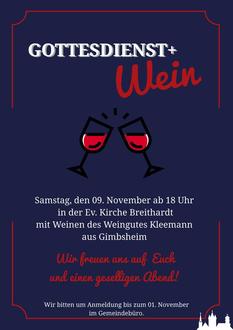 | 18.00 Uhr | Breithardt Gottesdienst+ Weinprobe |