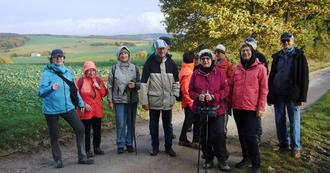 Am Donnerstag, 02.11. rollte ein Orkantief auf die Küstenländer zu und sorgte selbst im weit im Landesinneren gelegenen Hohenstein für Aufregung und Absagen von der von Breithardt aus geplanten Wanderung. 14 Wanderwillige waren pünktlich um 14.00 Uhr trotz des auch hier stärker als sonst wehenden Windes vor der alten Schule erschienen. Bei der Begrüßung erinnerte der Wanderführer, dass fast genau vor 23 Jahren der Wanderkreis zu seiner ersten Tour gestartet war. Mit dem Gedenken als Ansporn und dem Wohlwollen des Himmels startete die kleine Wanderschar alsbald durch die Glockengasse in Richtung Grünschnittdeponie. Von dem asphaltierten Wirtschaftsweg folgten die Wandersleute dem ersten nach links abzweigenden Weg in Richtung Wald. Von hier wurde die Ausdehnung Breithardts und der Neubau der Seniorenresidenz bewundert. Im Wald wählte die Gruppe den rechts parallel zum Waldrand ansteigenden Forstweg. Die Laubbäume hatten mit ihren nicht mehr benötigten Blättern einen gelb-braun gemusterten Teppich ausgebreitet. Bei einer Neupflanzung von Bäumen wurden Esskastanien entdeckt und es stellte sich die Frage ob Teilnehmer wohl noch irgendwann zum Maronensammeln kommen könnten. Wenig später wurden tiefe Rinnen im Gelände entdeckt. Die Runzeln von Mutter Erde werden allerdings als Runsen bezeichnet, obgleich die Erde bei ihrem Alter Runzeln sicher nicht diskriminierend empfinden würde. Noch schnell ein Foto und dann stiegen die Wanderinnen und Wanderer am Saum des Waldes entlang hinauf zum Oberholz. Weil niemand sein Pferd mitgebracht hatte, trotteten fortan alle auf Schusters Rappen auf dem neuen Reitweg in Richtung Reiterhof. Selbstverständlich würdigten die Läufer die Aussichten auf Steckenroth, Holzhausen oder Oberlibbach und es gab Orientierungshilfe, wenn gewünscht. Der Wind schob die Wanderer sanft den Hang hinunter, so dass die knapp zwei Kilometer lange Strecke bis zum Reiterhof schnell zurückgelegt werden konnte. Mal auf der einen Seite der Schutzhecke laufend und mal auf der anderen, erreichten die Teilnehmer die Eisenstraße. Auf diesem Wegstück wollte der Herr der Winde uns zeigen, dass er ein Abkömmling eines Orkantiefs ist und nicht nur ein zahmes Lüftchen. Es flogen aber weder Menschen noch Gegenstände herum, so dass der Wanderführer beim Halt an der Informationstafel zur Geschichte Breithardts die Vollzähligkeit der Gruppe feststellen konnte. Mit jedem Meter, den sich die Wanderer dem Birkenhof näherten, verlor der Wind an Kraft und wurde schließlich nicht mehr wahrgenommen. Auf dem Weg zur Schlussrast wurden noch der Talhof und die katholische Kirche passiert. Der junge Wirt im ASPENDOS freute sich, dass alle eingedeckten Plätze besetzt wurden und versorgte die Wanderinnen und Wanderer nach dem ausgiebigen Frischluftgenuss nun mit Getränken und allerlei Speisen aus seinem reichhaltigen Angebot. Da es allen geschmeckt hatte, gelangten die Teilnehmer zu der abschließenden Überzeugung, dass es gut war heute mitgewandert zu sein; die warmen Farben des Herbstlaubes, die tollen Aussichten und nicht zuletzt die fröhliche Gemeinschaft hätte man ja sonst verpasst.