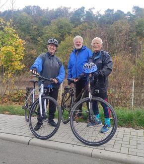 Der Ehrenvorsitzende Manfred Schmidt und der 2. Vorsitzende Helmut Heisen bevorzugen seit Jahren die 20 km mit dem Rad. Der Sportabzeichenobmann Willibald Ruhfaß war dabei als Prüfer, als sich die beiden auf der Rad- und Wanderstrecke Kettenbach - Oberneißen und zurück der Herausforderung stellten. Auf dem Bild sieht man sie über ihren Erfolg glücklich lächeln.