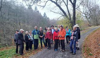 In diesem Jahr zeigte der November, dass auch er mit schönen Herbsttagen aufwarten kann. Zwar schien am Donnerstag, dem 13. November, als sich die Hohensteiner Wanderer bei der Wiesenmühle im Aartal trafen, die Sonne nicht so klar wie an den Tagen zuvor, aber von November-Blues konnte keine Rede sein. Erwartungsfrohe freundliche Gesichter kompensierten locker die fehlenden Strahlen der Sonne, denn sogar der Kurier hatte verraten, dass heute in das attraktive Lahnerbachtal gewandert wird. Die Exkursion wurde in zwei Gruppen durchgeführt, wobei für alle Teilnehmer der untere Abschnitt des Lahnerbachtales der wichtigste Zielpunkt war. Acht Wanderfreunde unter Führung von Hildegard widmeten sich in etwas langsamerem Tempo, dafür umso intensiver allem, was die gut fünf Kilometer lange Strecke zu bieten hatte. Rund zwanzig Wanderfreunde liefen mit Horst auf dem gleichen Weg am Rande des Aartales entlang zum Mündungsbereich des Lahnerbaches in die Aar. Dass diese Strecke als Hin- und Rückweg diente, schadete absolut nicht, denn durch die Änderung der Blickrichtung entdeckten die Teilnehmer Dinge, die sie beim Durchgang in der Gegenrichtung nicht wahrgenommen hatten. Erwähnt werden soll, dass die Wandersleute nicht nur die Überbleibsel, sondern auch die aktuellen Veränderungen beim ehemaligen Klinkerwerk registrierten.
