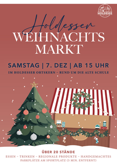 Der Holdesser Weihnachtsmarkt mit seinen mehr als 20 Ständen von Privatpersonen und Holdesser Vereinen freut sich auf Ihren Besuch. Selbstgemachte Speisen, Plätzchen und Bastelsachen laden zum Stöbern und probieren ein. Neben den Ständen ist der Nikolaus mit Geschenken für die Kleinen unterwegs. In der Alten Schule wird mit den Kindern weihnachtliches gebastelt und die Kinder werden geschminkt, die Vorleseoma erzählt spannende Geschichten. Um 18.00 Uhr gibt es von dem Musikzug Wehen weihnachtliche Klänge, um 20.00 Uhr sorgt der Männerchor im Schulhof für weihnachtliche Stimmung.