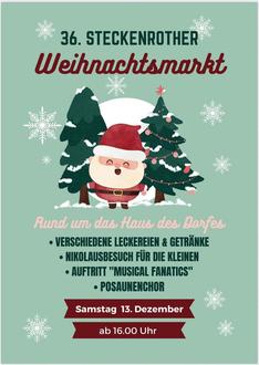 Wenn in Steckenroth die Lichterketten angehen, der Duft von Glühwein und heißem Gulasch über den Dorfplatz zieht und weihnachtliche Klänge über den Dorfplatz klingen, dann ist es wieder so weit: Der Steckenrother Weihnachtsmarkt öffnet zum 36. Mal seine Türen – ein fester Höhepunkt im Jahreslauf für Steckenroth und ganz Hohenstein.