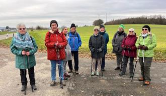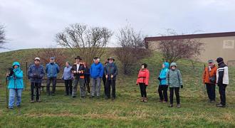 Obgleich widriger Umstände halber für die Wanderungen am Donnerstag, 27. November keine Ankündigung im Hohensteiner Blättchen erschienen war, fanden dennoch 25 Wanderwillige rechtzeitig den vorgesehenen Treffpunkt beim Borner Sportplatz. Nach der Begrüßung begaben sich zehn Wanderfreunde unter Hildegards Führung auf eine gut vier Kilometer lange Extratour. Von dem Waldstück auf dem Noll, wo für den Staatsanwalt einer ZDF-Produktion eine Leiche deponiert gewesen war, lief die Gruppe zu einer Turmstelle der jüngeren Limeslinie. Nach Begutachtung der Mauerreste wandelten die Teilnehmer auf einem Weg, der einst die Klöster Gronau und St. Ferrutius verband. Das zur Erinnerung an einen „Heiligen Stock“ am Kreuzungspunkt dieses Weges mit der historischen Idsteiner Straße aufgestellte Wegekreuz war der nächste Anlass für einen Stopp mit Informationen. Selbstverständlich wurden die Wanderer beim Passieren des Touristenheimes über das Gebäude aufgeklärt. Waren die Wandersleute ab dem Wegekreuz bis zum Hinweis auf das Wassertretbecken der Markierung der Borner Runde gefolgt, so traten sie ab der Kneipp-Anlage beim Pfingstborn nun den Rückweg an, am Friedhof vorbei zum Vereinsheim des GSV.