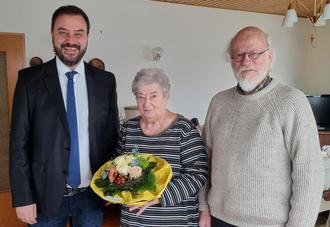 Bürgermeister Daniel Bauer und Ortsbeiratsmitglied Dr. Christian Spath überbrachten der Jubilarin Renate Senz am 27. Januar die Glückwünsche der Gemeinde Hohenstein und des Ortsbeirates Steckenroth zum 80. Geburtstag.