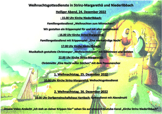 16.00 Uhr Kirche Strinz-Margarethä: Familiengottesdienst mit Krippenspiel: „Eine merkwürdige Nacht“