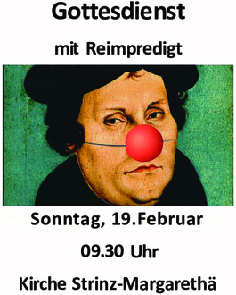 09.30 Uhr Kirche Strinz-Margarethä mit gereimter Karnevaspredigt