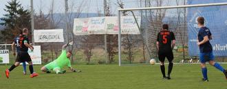 Da kann der Gäste-Keeper nur noch hinterherschauen, herrlicher Schlenzer vom Weilerer Spieler Lukas Müller