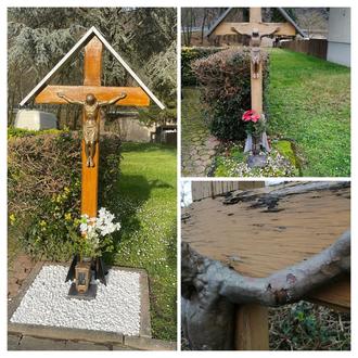 Die 1. Nachbarschaft St. Ägidius hat in mühevoller Arbeit das Kreuz in der Binger Straße (Höhe Brücke zur B9) restauriert. Nachdem der Zahn der Zeit an dem Kreuz genagt hatte, haben Werner Breitbach und Erich Gras sich um einen neuen Anstrich gekümmert, Klaus Hartel sorgte für die nötigen Holzarbeiten und Theo Dietrich übernahm die Zinkarbeiten. Die weitere Pflege des Kreuzes übernimmt Werner Breitbach. Allen Beteiligten ganz herzlichen Dank für ihren Einsatz.
