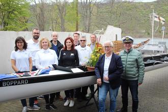 Der Vorstand des Bopparder Ruderclubs Germania und Bürgermeister am neuen Boot