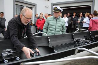 Willi Rüdel (li.) erklärt dem Bürgermeister das neue Boot
