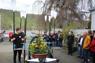 Anschließend wurde die „Boppard“ für die Jungfernfahrt zu Wasser gelassen. Der erfahrene und routinierte Willi Rüdel übernahm das Steuer. Die Mannschaft setzt sich aus der Jugend mit Jana Breitbach, Philipp Reißfelder und Tom Janke zusammen. Begleitet wurden sie von Peter Többicke, welcher als dienstältestes und aktives Mitglied die Spende für die Skulls übernommen hat.