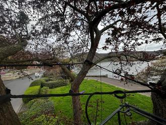 Um den ortsbildprägenden Zierapfel in der Rheinallee trotz Fäulnis zu erhalten, hat ein Fachbetrieb die Baumkrone nun im Auftrag der Stadt Boppard mit einer Kronensicherung aus Kunstfaserseilen stabilisiert.