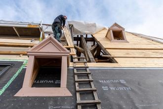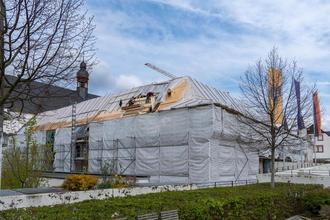 Stadt Boppard - Die ersten Gauben auf dem Dach des Karmelitergebäudes sind montiert. Rund 65 Gauben werden in den kommenden Wochen dort angebracht werden. In rund zwei Wochen beginnen dann die Dachdecker mit den Naturschieferarbeiten.