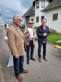 In Anwesenheit zahlreicher Gemeindemitglieder, des Bürgermeisters Herrn Jörg Haseneier, der zwei Beigeordneten Frau Margit Gronen und Herrn Hermann Noe, den Mitgliedern des Ortsbeirates, dem Ortsvorsteher von Oppenhausen Herrn Jürgen Pörsch, wurde die Urkunde von der ausführenden Firma Hermann Heuft GmbH, Bell, vertreten durch Herrn Claus Heuft, an den Bürgermeister und mich übergeben.