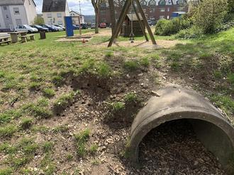 Auf dem Spielplatz (Dorfplatz) befinden sich neben dem Durchgangsrohr auf zahlreiche Erdwespen. Vielen Dank für den Hinweis. Die Stadtverwaltung hat eine Fachfirma mit der Beseitigung beauftragt. Ich bitte Eltern und Kinder diesen Bereich zu meiden bis die Arbeiten abgeschlossen sind.