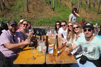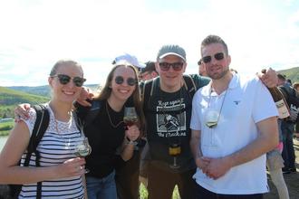 Auf der Strecke von etwa 6 Kilometern, mit wunderschönem Blick auf die größte Schleife des Rheins, konnten die Gäste in den Steillagen des Hamms einen tollen Tag verbringen. Per Busshuttle, Fahrrad, Roller oder Bahn, das Angebot der Anreise war groß. Vereine, Familien oder Freunde, beim gepflegten Glas Wein saß man zusammen und konnte den einmaligen Blick ins Rheintal genießen.