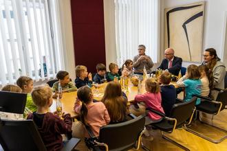 Das Kinderparlament hatte sich gut auf den Besuch im Rathaus vorbereitet und Bürgermeister Jörg Haseneier nahm sich viel Zeit, um alle Fragen der Kinder ausführlich zu beantworten. So erfuhr das Kinderparlament zum Beispiel, dass der Bürgermeister nicht nur viel Besuch aus Boppard und der Umgebung erhält, sondern demnächst auch wieder internationale Gäste aus Japan und Brasilien empfängt.