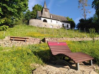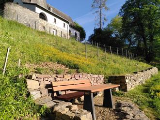 Die Liegebank wurde von der Kreissparkasse Rhein-Hunsrück gesponsert. Herzlichen Dank dafür, Dank an die fleißigen Mauerbauer und den Bauhof für die Montage der Bänke.