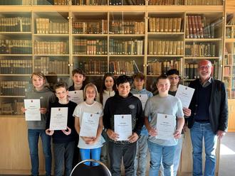 Elf Schülerinnen und Schüler der achten Klassen wurden mit Preisen ausgezeichnet und sind somit im nächsten Jahr für die zweite Runde des Landeswettbewerbs qualifiziert. Ein erster Preis wurde an Niklas Schneider vergeben, drei zweite Preise gingen an Jonah-Finley Daub, Justus Schick und Said Tbaileh. Sieben dritte Preise wurden an Paul Eulenborn, Jonas Göhlmann, Kilian Hoffmann, Joulia Mousali, Christoff Oertel, Clara Rodrigues-Buschjäger und Romeo Sheikh verliehen.