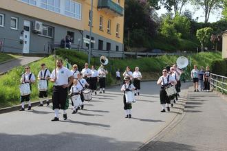 Kaum ist dieser zum Aufstellen bereit, hört man schon die Klänge des Fanfarenzuges Grün-Weiß Bad Salzig, denn der kommt jetzt mit seinem musikalischen Repertoire ins Spiel. Als Dankeschön für die Mühe, werden Baum und Inaktive am Salziger Börnchen abgeholt und zum Theodor-Hoffmann-Platz geleitet. Bei flotten Frühlingsmelodien erwarten dort schon Gäste und Einheimische die Protagonisten.