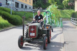 Sascha Minning bringt den Maibaum ins Dorfzentrum