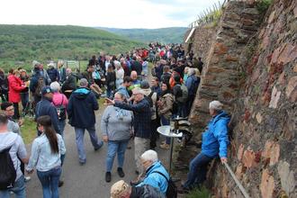 Auf der Strecke von etwa 6 Kilometern, mit wunderschönem Blick auf die größte Schleife des Rheins, konnten die Gäste in den Steillagen des Hamms einen tollen Tag verbringen. Auf Vater Rhein herabblickend bekam man aber auch eine Vorstellung, welch großen Aufwand und Knochenjob die Arbeiten in den Weinbergen sind, bis beste Tropfen kredenzt werden können. Eine geänderte Wegstrecke sorgte dafür, dass das Besucheraufkommen entzerrt wurde und auch Stände besser positioniert werden konnten. Mehr Sicherheit damit für alle, und vor allem ein besseres Durchkommen der Rettungskräfte. Per Busshuttle, Fahrrad, Bollerwagen, Roller oder Bahn, das Angebot der Anreise war groß. Vereine, Familien oder Freunde, beim gepflegten Glas Wein saß man zusammen und konnte den einmaligen Blick ins Rheintal genießen.