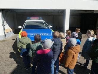 Im Innenhof der Polizeiwache wartete dann das nächste Abenteuer: Die Polizeiautos wurden ganz genau unter die Lupe genommen. Vor allem das Blaulicht und das laute Martinshorn beeindruckten die kleinen Besucher.