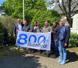 In Buchholz ist 2024 ein ganz besonderes Jahr. Das 800. Jubiläum der ersten urkundlichen Erwähnung wird gefeiert. Am Samstag, dem 4. Mai, wurde im Rahmen einer feierlichen Veranstaltung am Gemeindehaus Buchholz der Startschuss für die Jubiläumsfeierlichkeiten gegeben. Höhepunkt des Tages war die Enthüllung der Jubiläumsfahne, die symbolisch den Beginn der Festlichkeiten markierte.